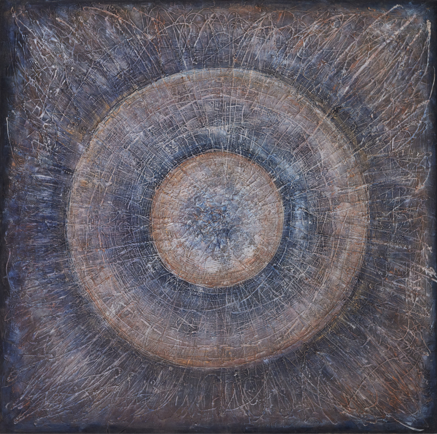 This extraordinary painting, crafted with utmost precision, portrays a harmonious interplay of circles and minute textures, meticulously formed with acrylic cones. As you delve deeper, “Aura” becomes a profound dialogue between space and the universe, revealing geographies unseen and evoking the eternal dance of life’s chakras. Each stroke serves as a gateway to infinite possibilities, where the celestial meets the earthly.